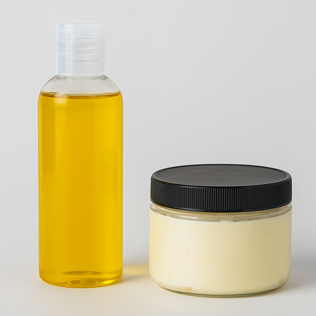 This perfect duo pairs our rich, creamy Body Butter with our lightweight, silky Body Oil to give your skin the hydration it deserves from morning to night. The butter melts deeply into the skin to restore moisture, smoothness, and radiance, while the body oil seals it all in with a soft, healthy glow.